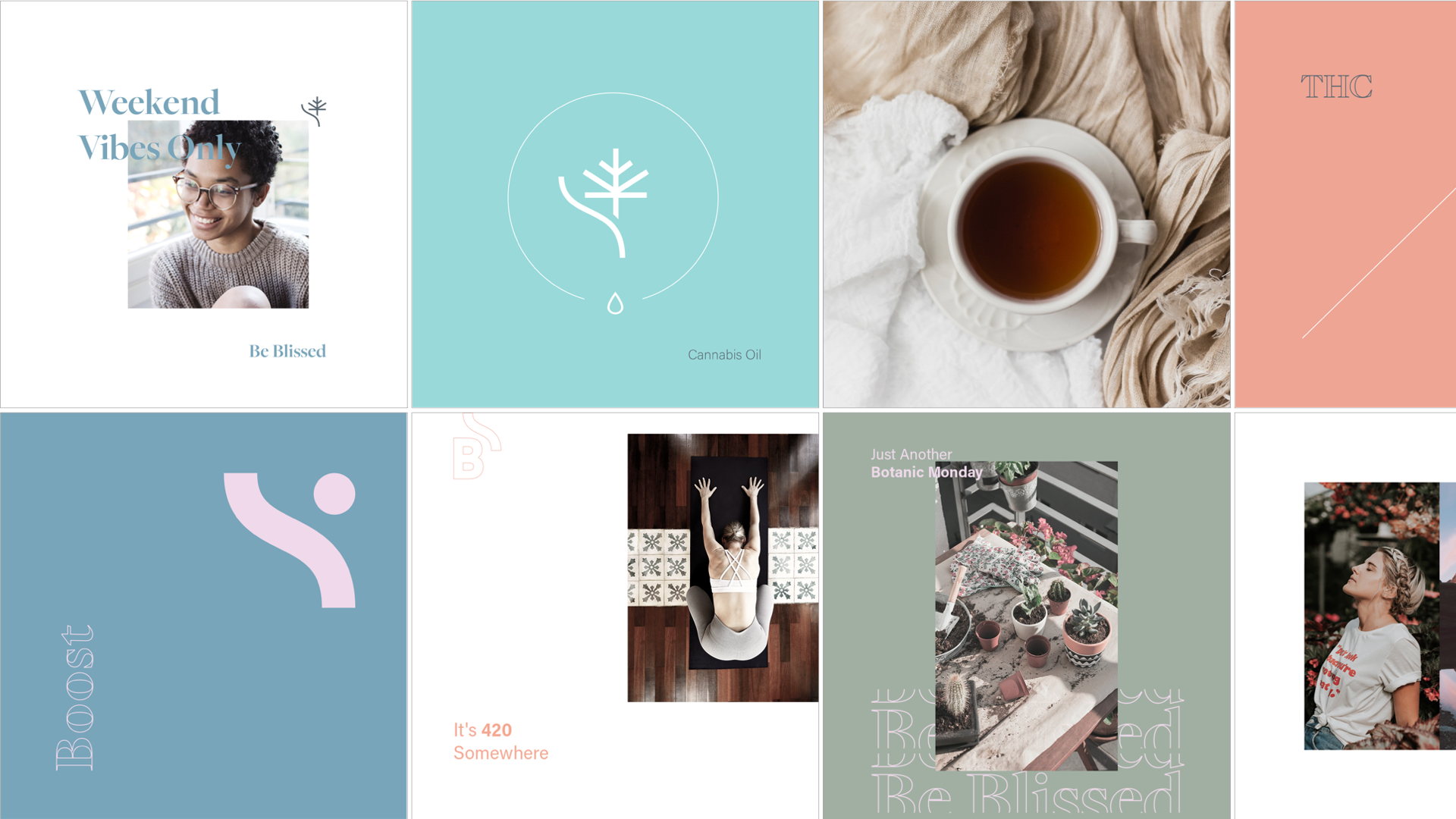 Develop a Brand Identity and Packaging for a Cannabis Oil. The Brand Identity created for Blissed lives and breathes its promise made to women. From meaningful colour palette choices to social media content guidelines, we created a distinct character and voice that resonated with the target audience. The authentic, inspiring brand for Blissed included beautiful product packaging, sales messaging, and an overall story that was much more than a logo.