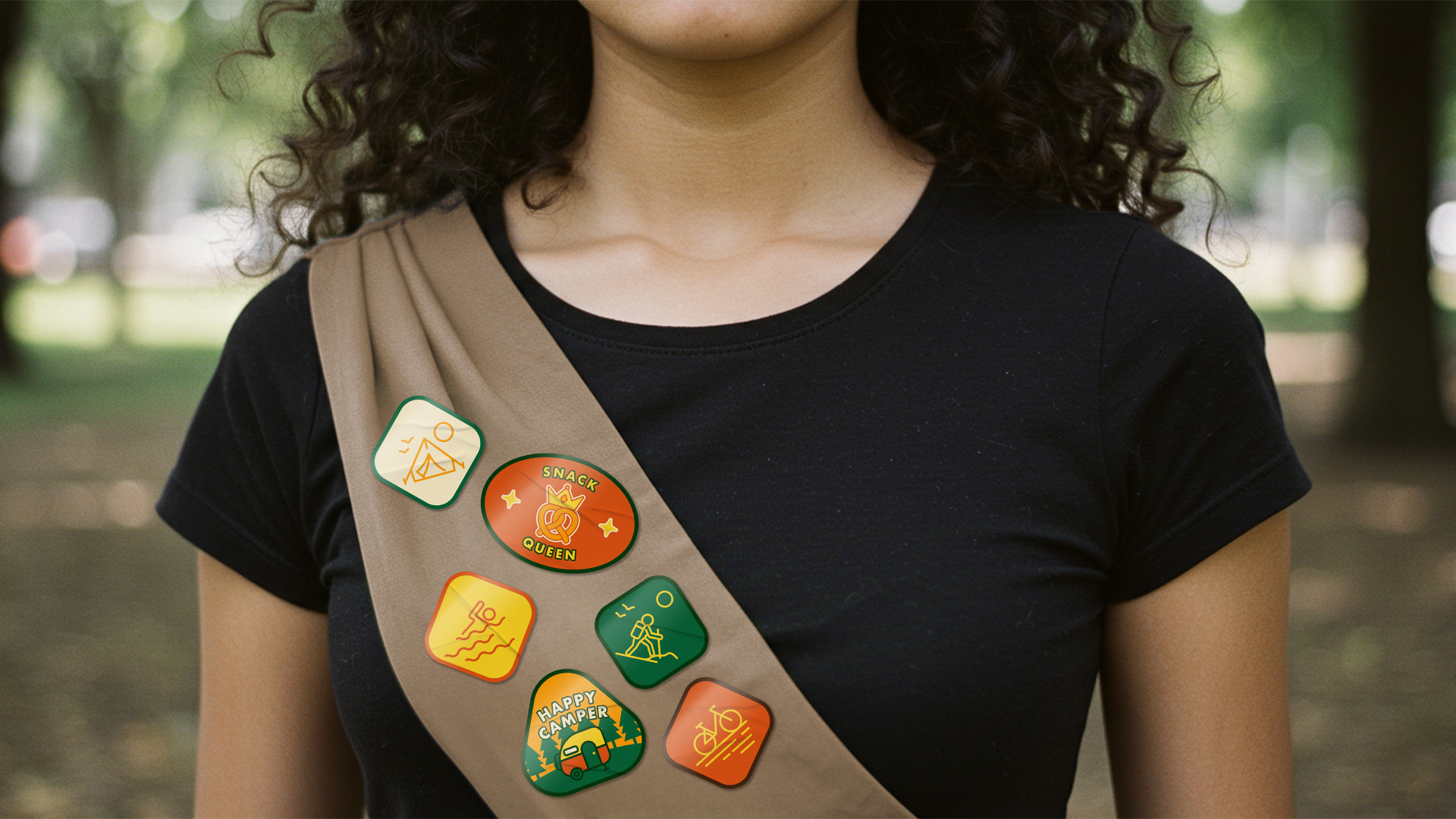 The idea was that kids like to collect things, and parents might feel nostalgic about their own time in summer camps. We created a number of badges for various summer activities that families could do; they could make their own sash and paste their completed badges throughout the summer.