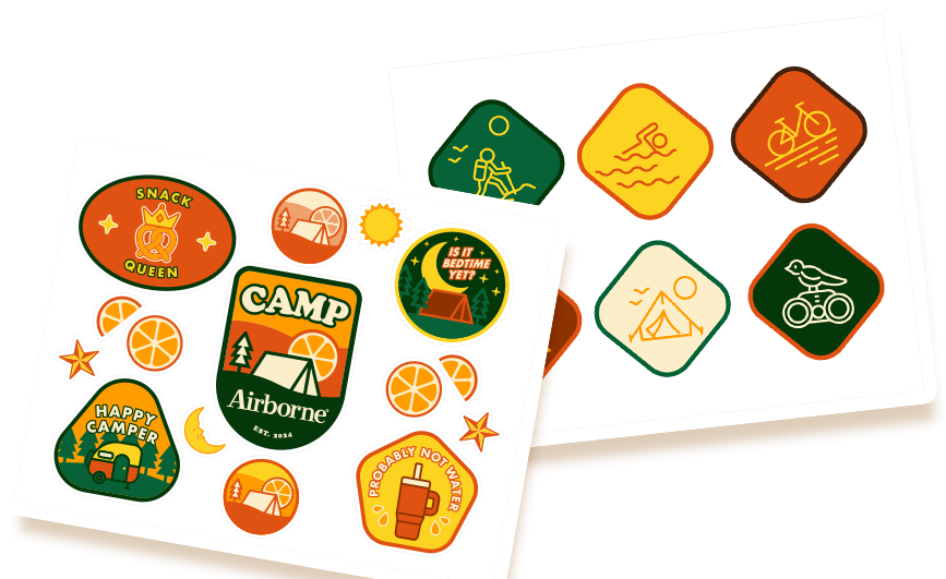 Summertime means sunsets, swimming, cold drinks, and bug bites - but it also means the kids are out of school, and parents are constantly looking for new ways to keep them busy! We created Camp Airborne; an Instagram activation that would provide printable “badges”, craft activities, contests, and more for parents and kids to complete throughout the summer.