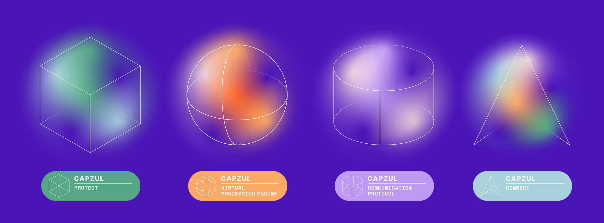 The shapes were built to use in videos communicating Capzul’s offering; they represent the nature of the system that protects your data. Constantly shifting, regenerating, the entire system is impenetrable. These were then animated to show the ever-changing nature of their system.