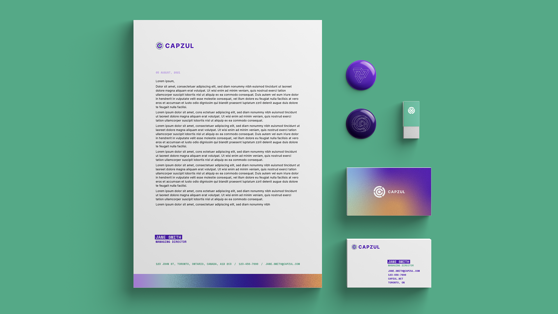 The style was then used to create icons to identify each of Capzul’s product offerings, along with its own limited colour palette.