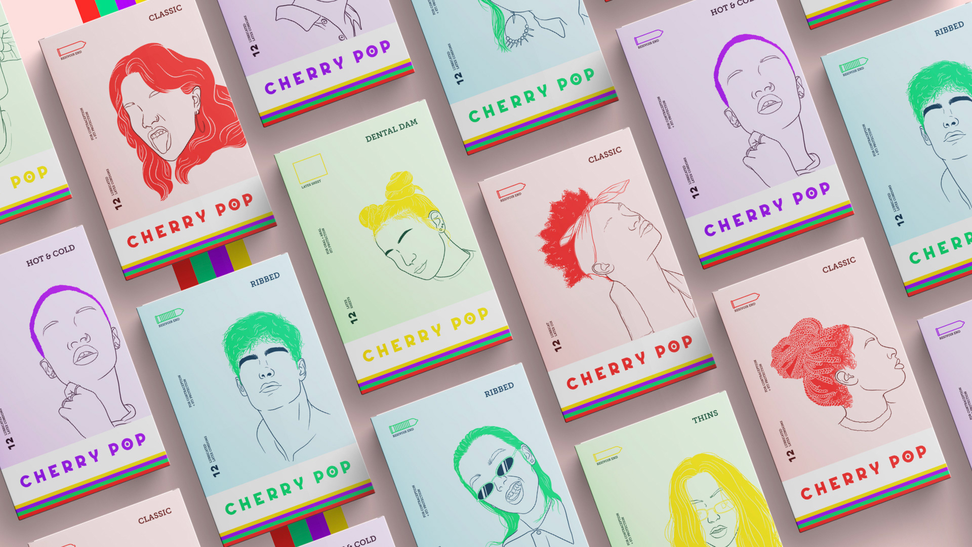 Cherry Pop’s mission is to provide effective contraception for everyone. Young adults, and particularly young women, find purchasing condoms awkward or embarrassing, and some won’t even do it. It doesn’t help that the category is dominated by brands targeted exclusively to straight men.
