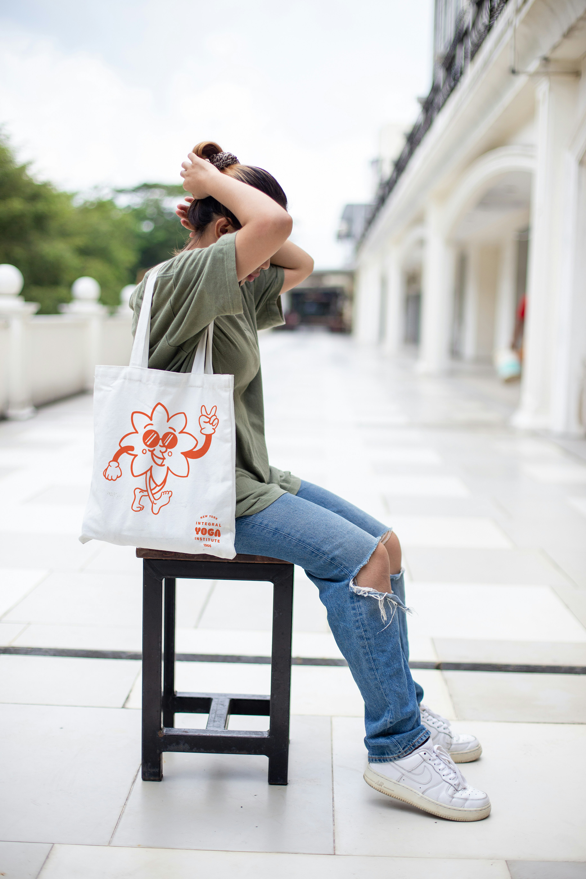 The sunglasses and peace finger sign were added to reference the hippie movement in the 1960’s, yoga and spirituality were very closely related. There was also a feeling of acceptance in this space at this time, something that I feel yoga, exercise, and wellness sphere of today is severely lacking. I wanted this brand to feel just as open and welcoming as it had been when it was founded.