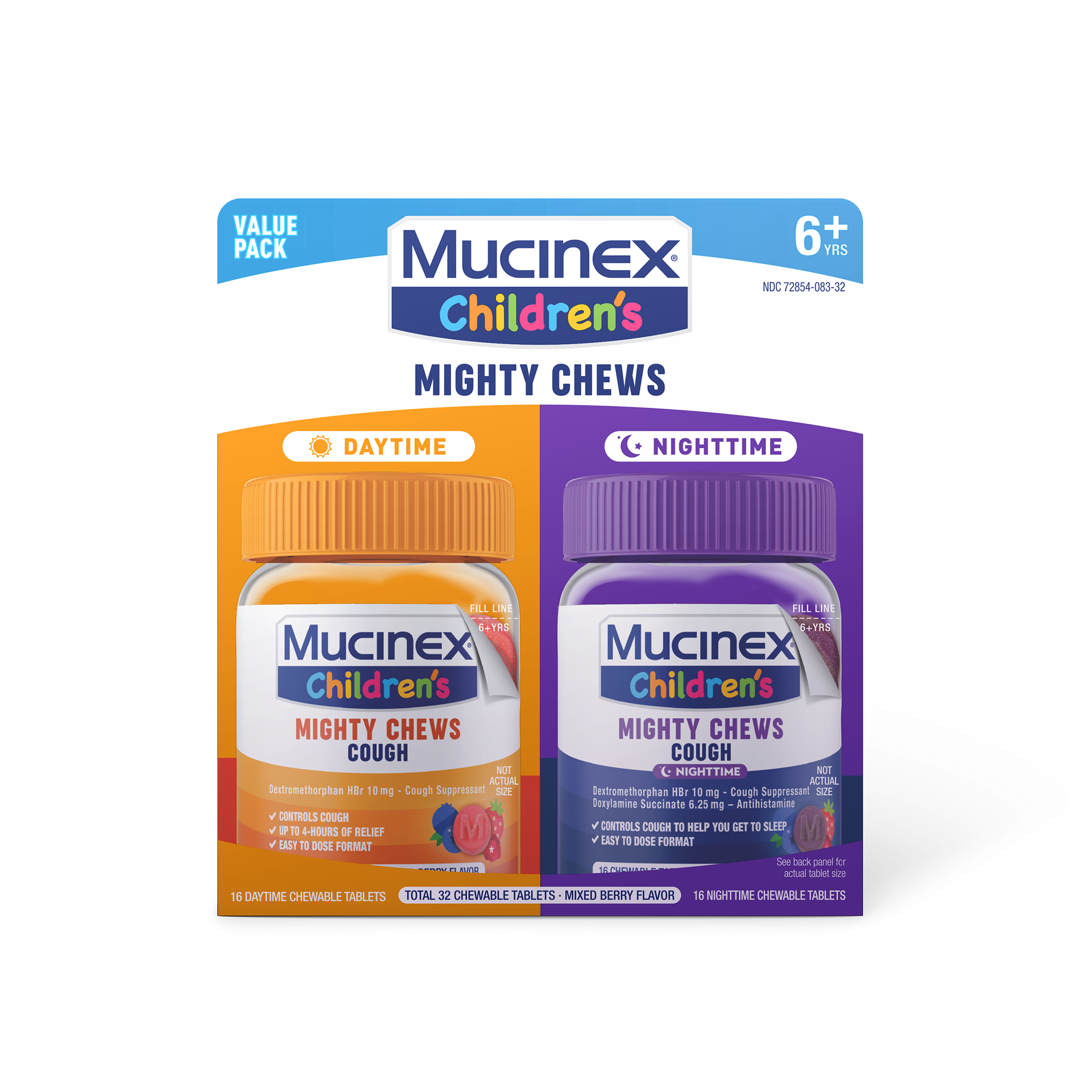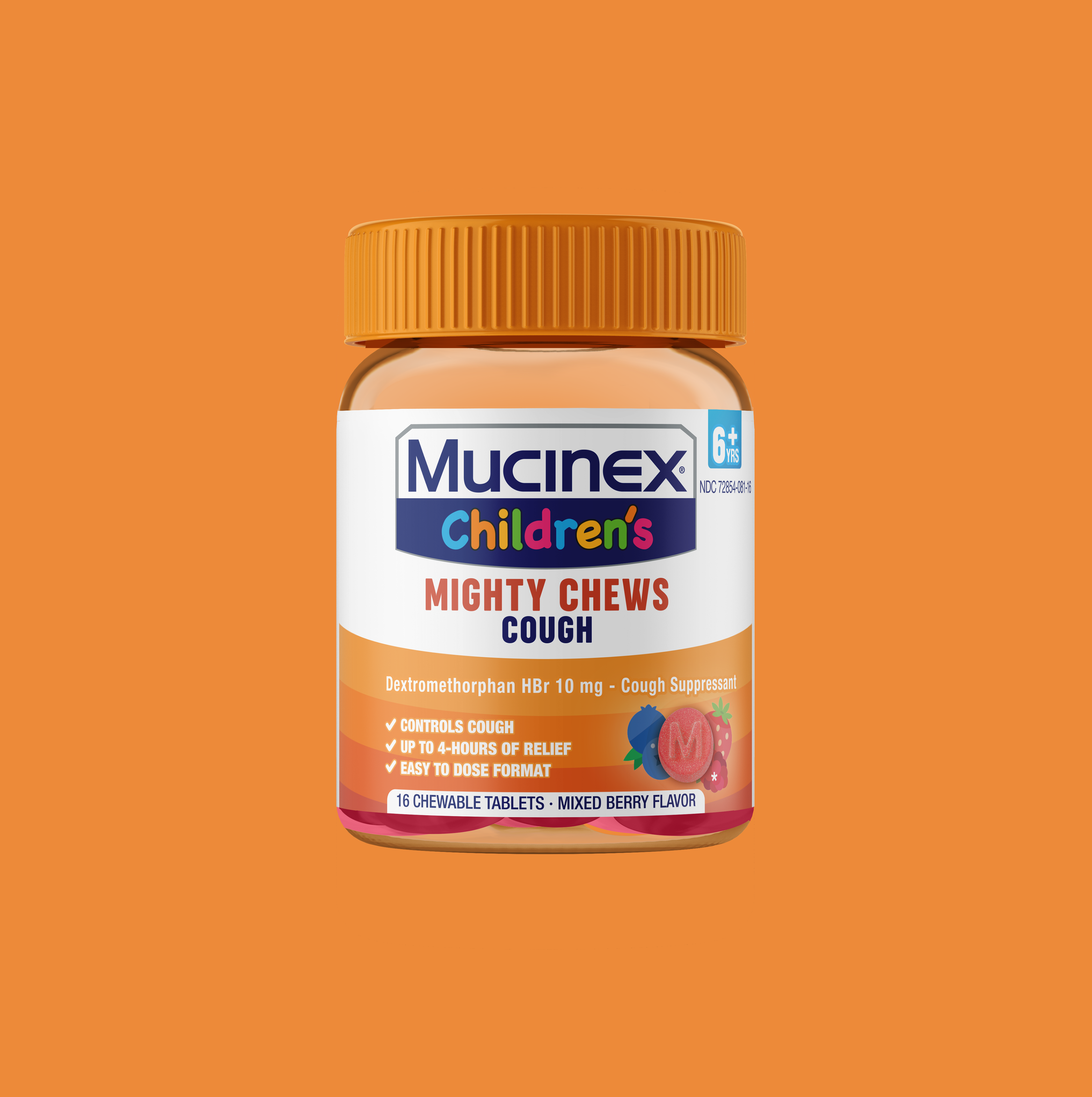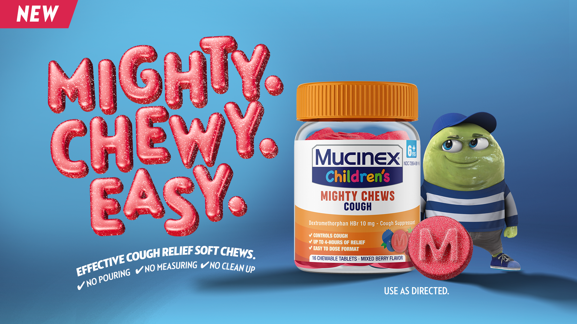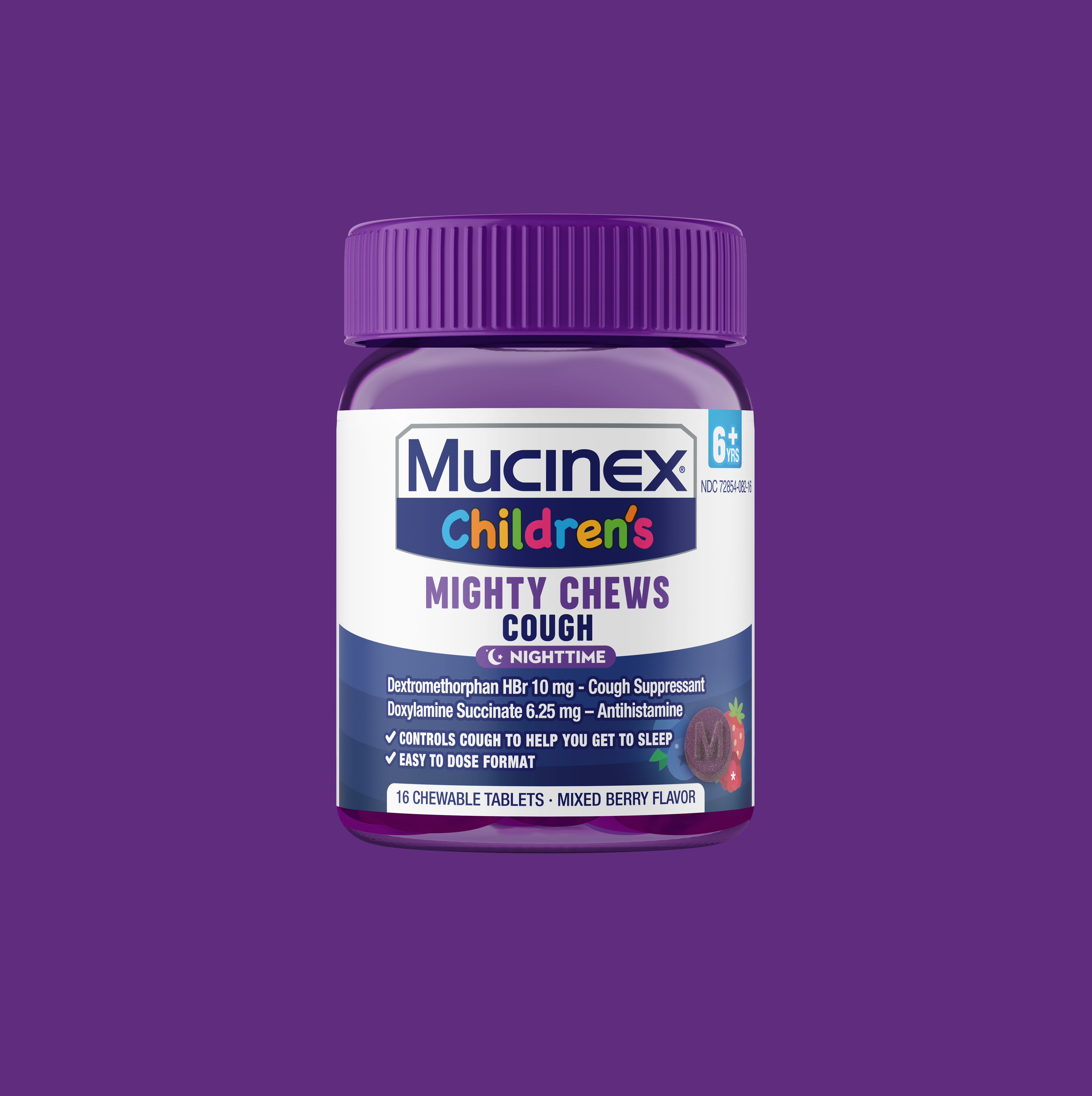 Create Packaging for Mucinex’s new Children’s cough gummy; Mighty Chews. I worked together with my team at Energy Studios, Oliver, and Reckitt to create these designs. The ask was to create two bottle labels for the Children’s cough gummies; one for the daytime gummy and one for the nighttime gummy. The labels had to appeal to children, while also conveying confidence in parents. The labels also had to match the current lineup of Children’s products, utilizing their Children’s logo lock-up.