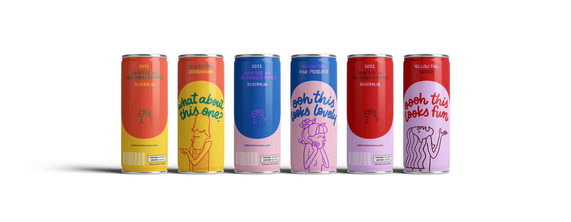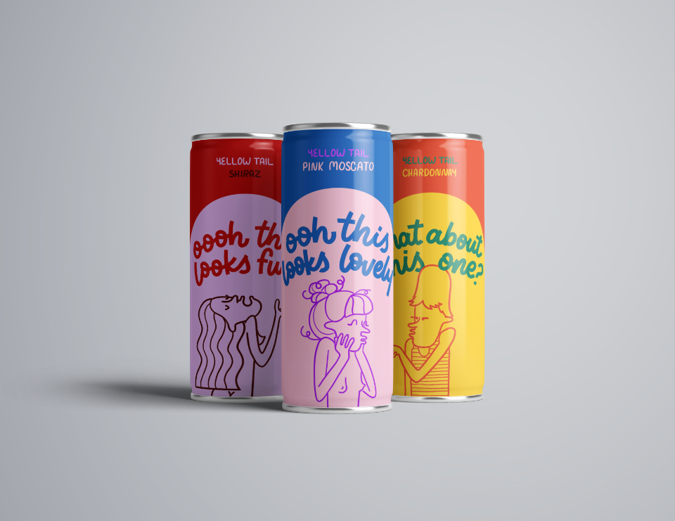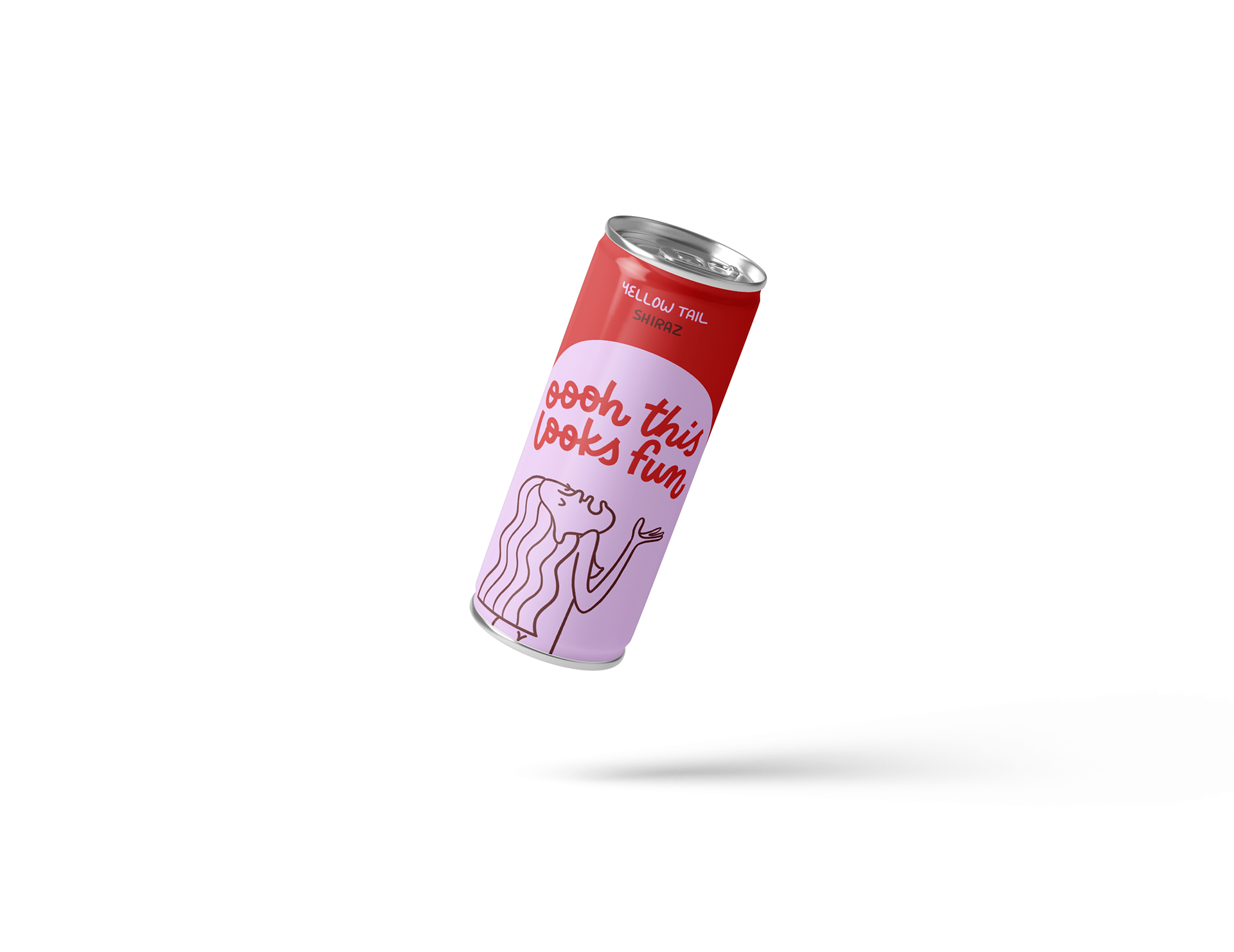 Design labels for three types of Yellow Tail wine. I elected to design cans since they have become very popular here in Quebec for both cocktails and wine.